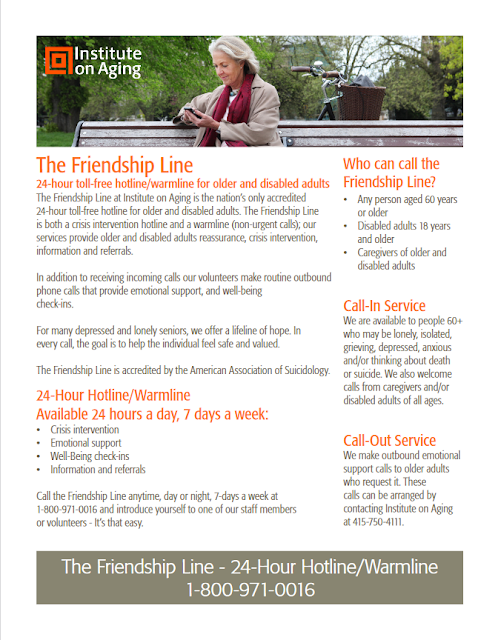 Institute on Aging | The Friendship Line | 24-hour toll-free hotline/warmline for older and disabled adults
